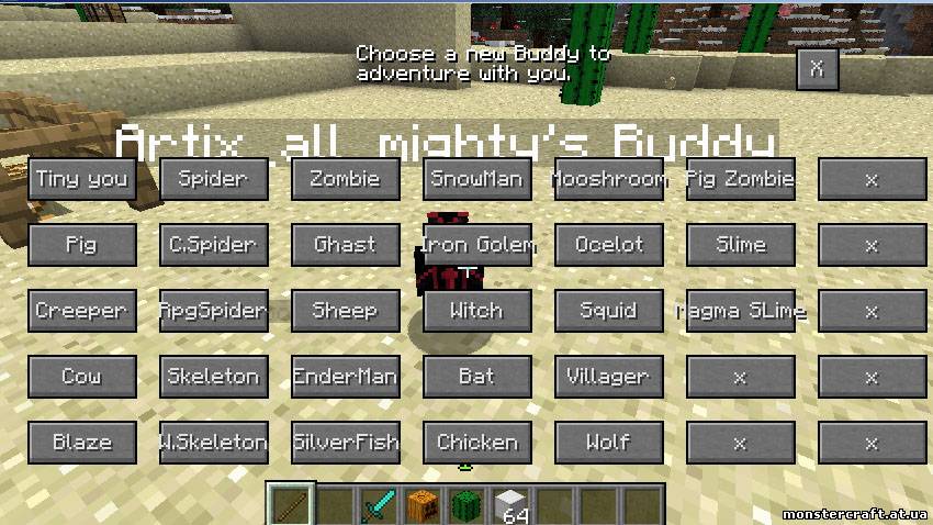 Маленькие питомцы с моделями разных персонажей игры. Он будет сопровождать вас и развлекать своим видом Установка: Установите Minecraft Forge Файлы из папки Pet Buddies [1.5.2] переместите в .minecraft/mods ![]() | |